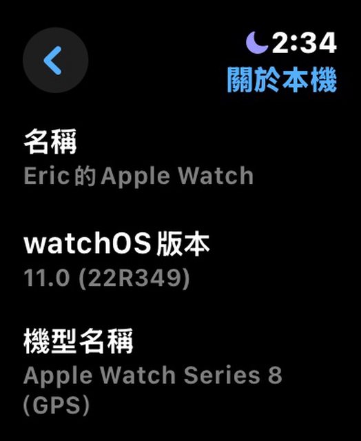 (顯示是Eric是因為她重置了,我要拍電池健康度,所以才重新設定成我的手錶去截圖)