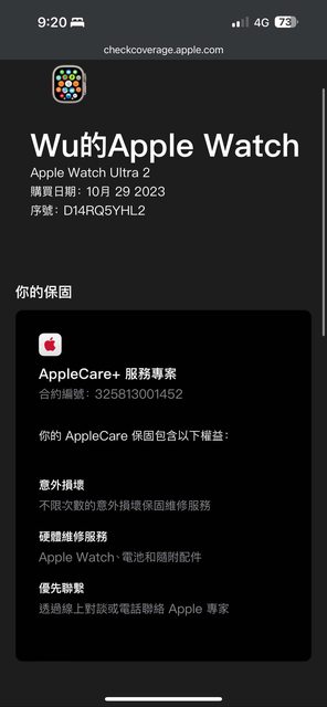 2023/10/29購入,保固一年有買apple care