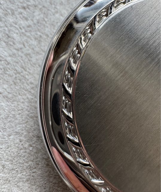 有點像月桂冠的裝飾,按壓上方龍頭可開蓋以及上鏈,內蓋有紀念刻印,搭配原廠懷錶鏈