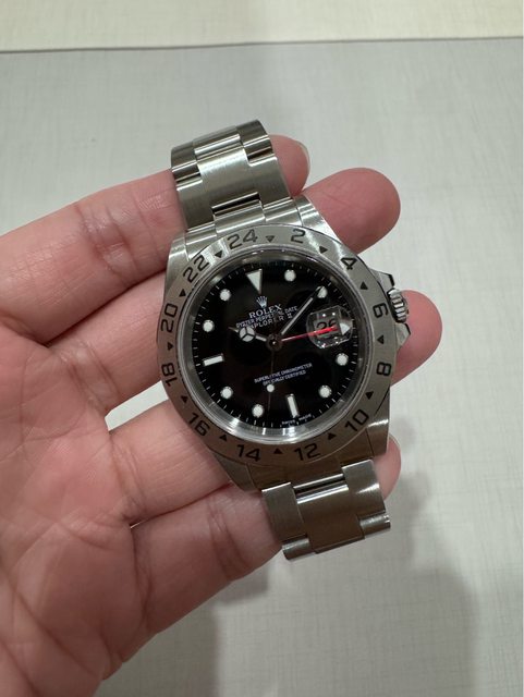 品牌名稱:Rolex 手錶型號:Explorer ll 16570 購買年份:Y字頭,2024/3東京勞服保養保證卡(保固至2026/3) 購買來源:日本拍賣 欲售金額:暫售 18.8W -> 17.8W 聯絡方式:站內信 交易方式:雙北面交 物件描述: 1. 購買時單錶,因想收藏故後來有買了同樣Y字頭的盒單(請參考圖) 2. 錶況好,外觀正常使用痕跡 無大傷,夜光正常 3. 原錶是舊版的錶扣,後來有購入膠帶與兩個副廠的錶扣 可交流,大刀別來...感謝