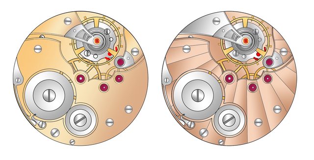3. 取消了一些機芯上的固定孔位,例如擺輪橋板旁邊的螺絲