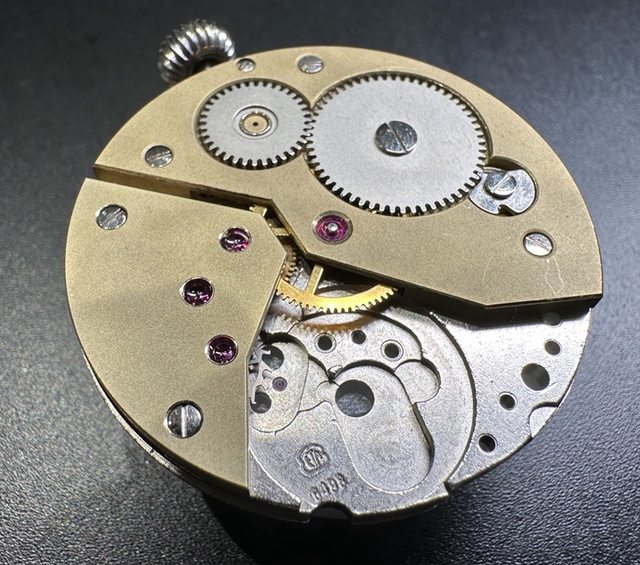 後續便是再次針對粗胚機芯做測試,先不說精準度,至少穩定度也是一隻手錶的基礎,總不能手錶走一走偷停,因此我們同樣的將原始6498的寶石,齒輪,擒縱,擺輪系統等等裝上自製的零件上進行走時等調整