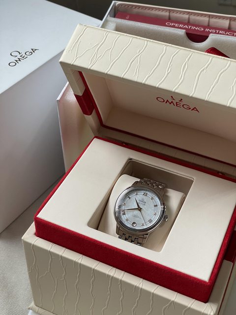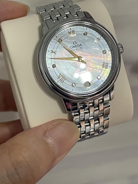 出售Omega蝶飛典雅系列腕錶,錶面是白母貝,