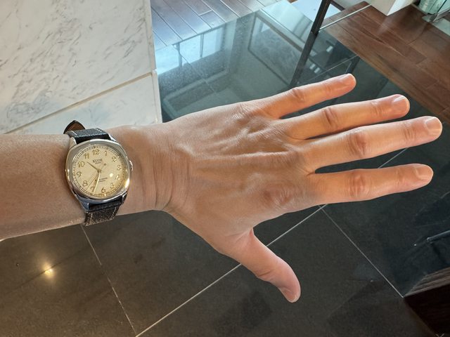 一樣是枕形錶殼,錶徑34厚度11。