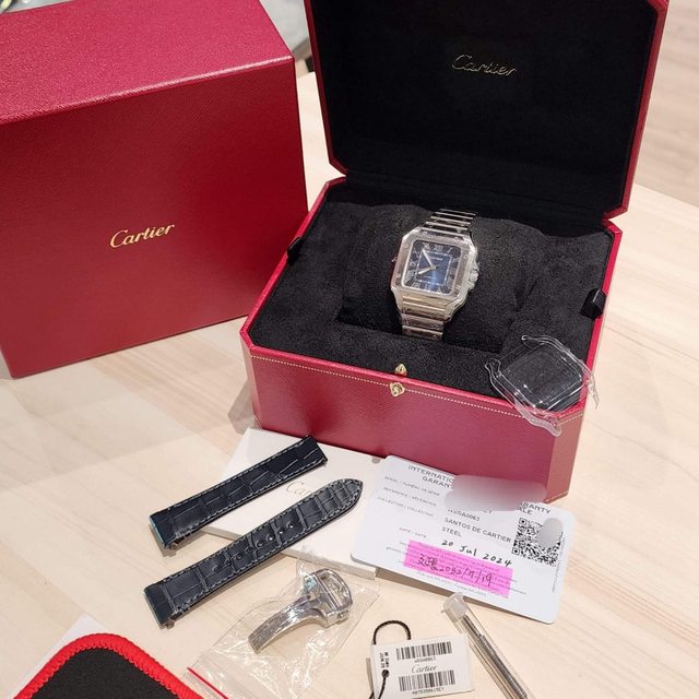 標題[賣錶] CARTIER 卡地亞 山度士 中型 藍面
