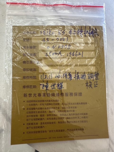 錶況:已經洗油保養檢查,一日誤差11秒